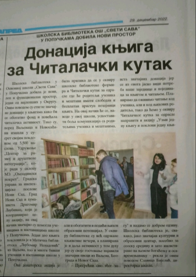 Читалачки кутак је заживео много брже него што смо очекивали. Томе су свакако допринели медији, родитељи наших ученика, али и добар део мештана који радо долазе да одаберу књигу за читање.