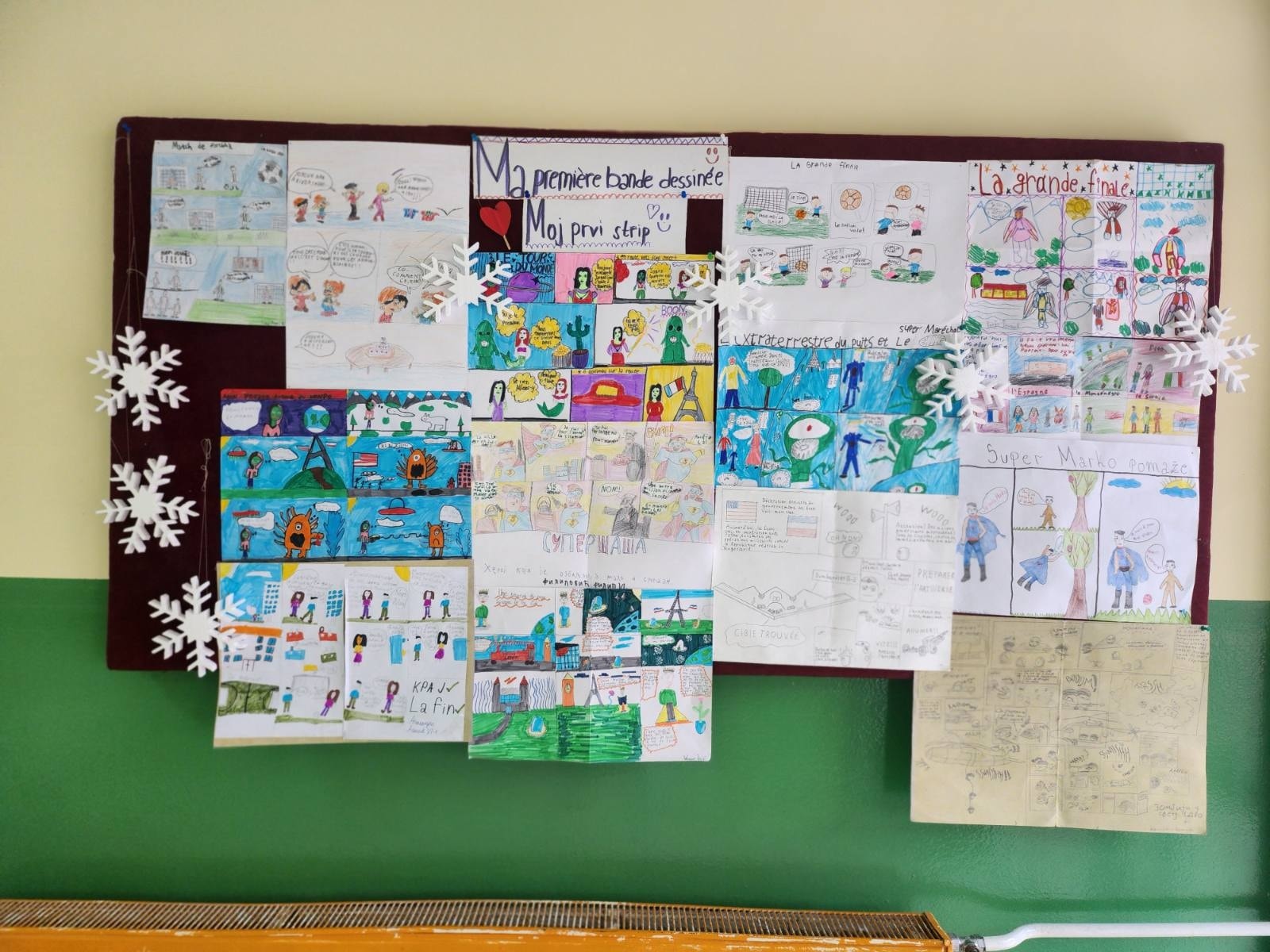 Радови су обједињени и изложени на школском паноу под називом „Мој први стрип“, где поносно представљају труд и креативност наших ученика.