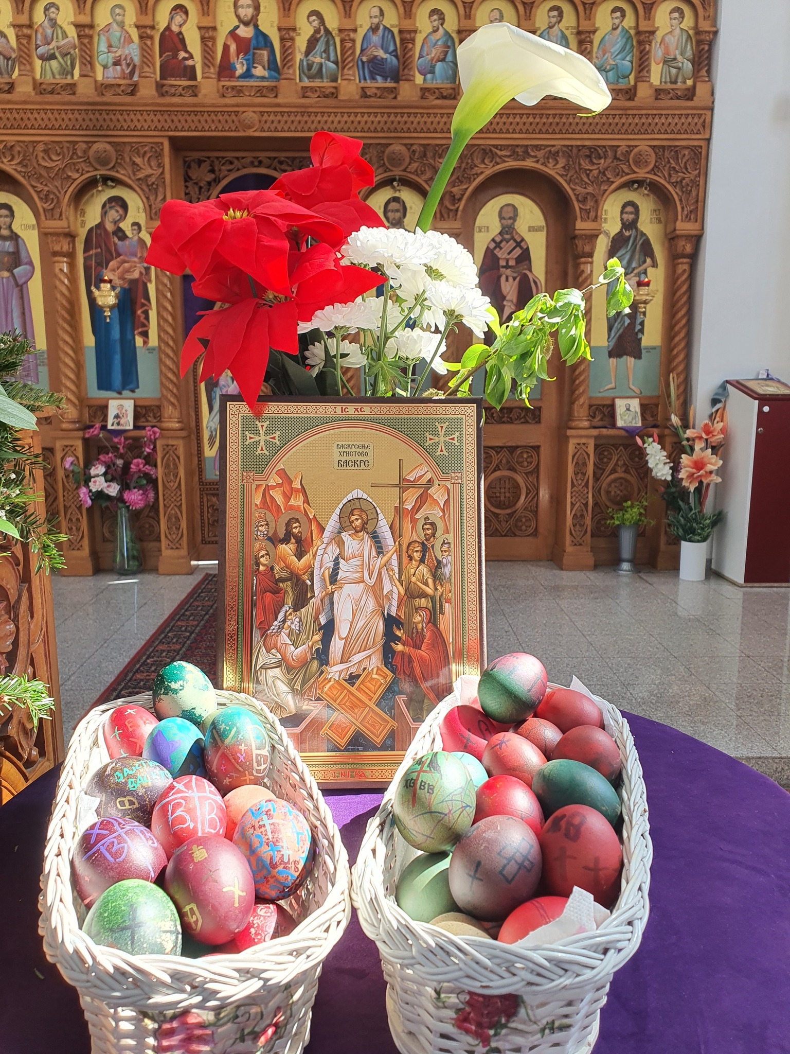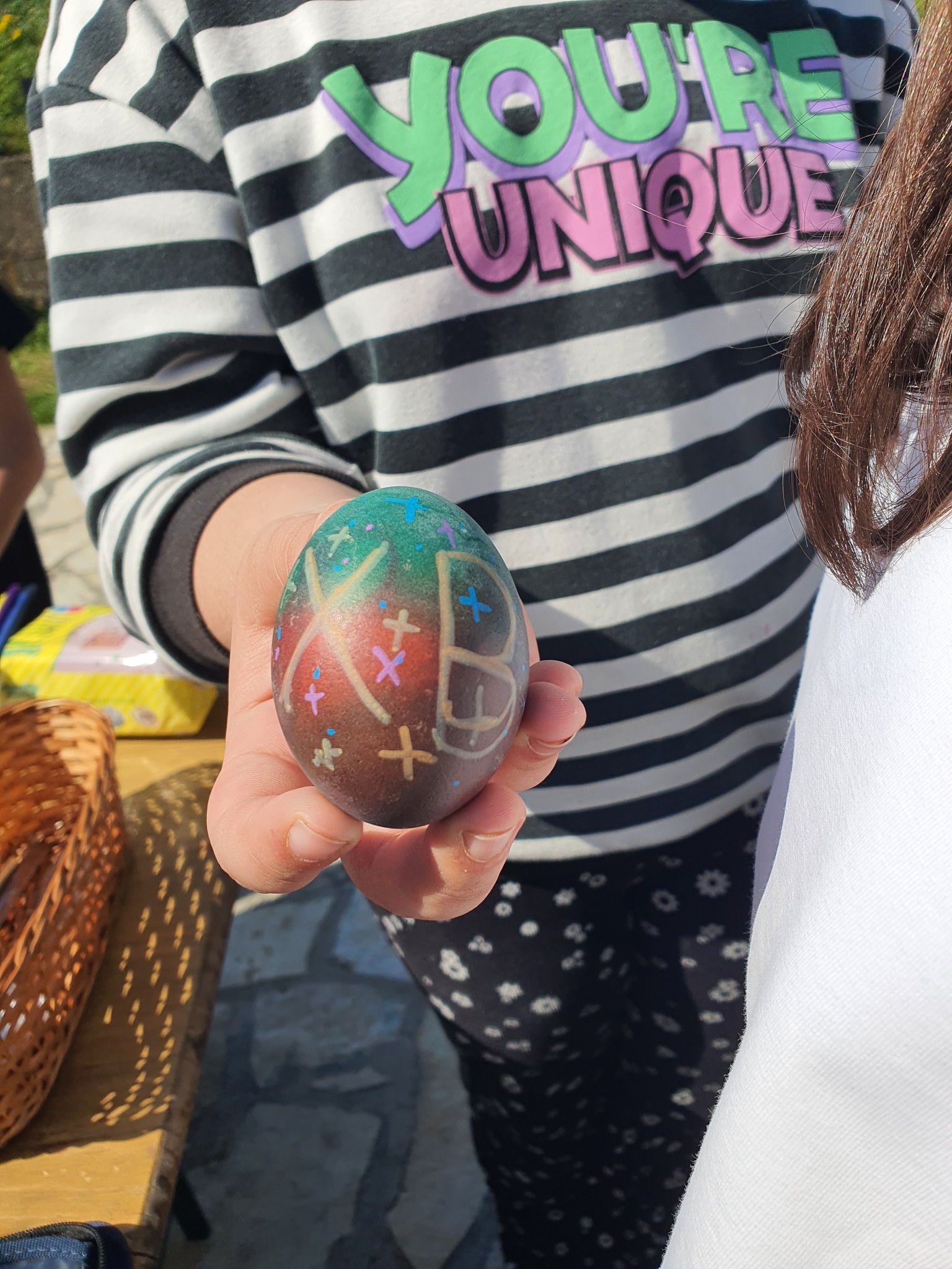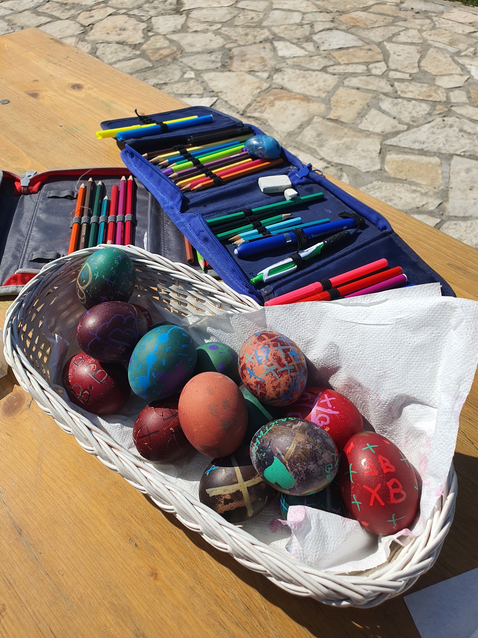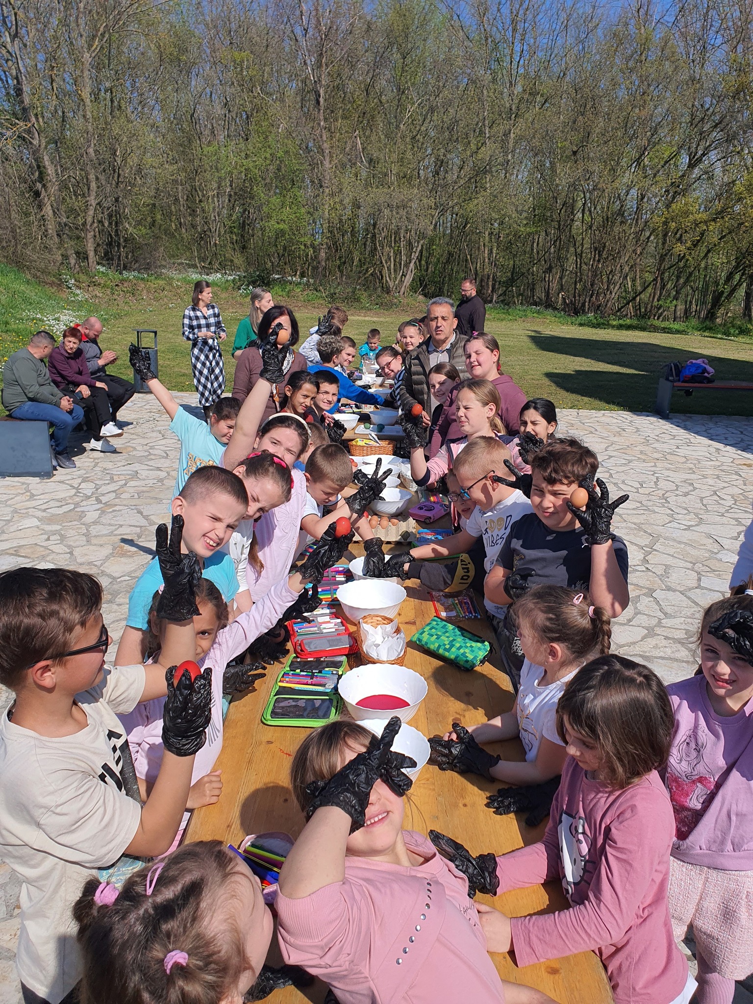 Након тога уследио је креативни део радионице у порти цркве. Ученици су учествовали у фарбању и шарању јаја за васкршње празнике, показујући маштовитост и радост у раду. Радови су били разноврсни и креативни, а ученици су уживали у заједничком стварању.